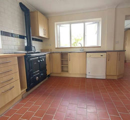 14' 3" x 10' 7" (4.34m x 3.23m) (approx.) Fitted with a range of base and eye level units, Rayburn oven, stainless steel sink unit with mixer tap, part tiled walls, plumbing and space for dishwasher, quarry tiled flooring, UPVC window to rear and door to garden.