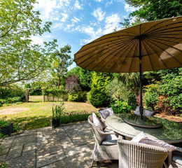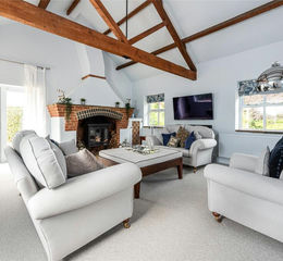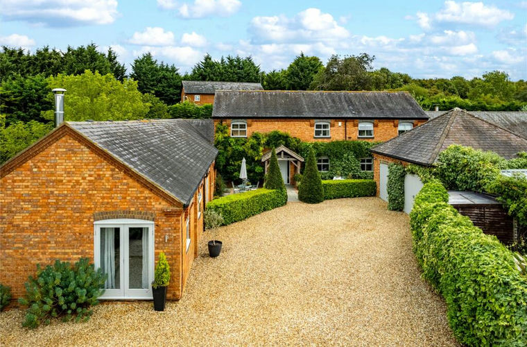 A five-bedroom barn conversion with nearly 2,900 sq. ft. of versatile accommodation, set in mature gardens with far-reaching countryside views, and with a private driveway and a double garage on the edge of Little Brickhill village. The ground floor is centred around a striking double-height entrance hall. The triple-aspect sitting room has exposed ceiling beams and a brick fireplace with log burner, creating a focal point, while a formal dining area and separate study provide flexible spaces for entertaining and home working.