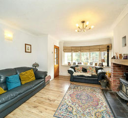 With brick-built feature fireplace with log burner. Large bay window to the front. Accessed from the hallway and leading into Dining Room beyond.