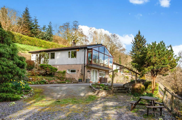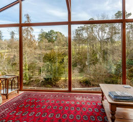 The beautifully maintained grounds extend over an acre, featuring lush lawns, mature trees, and vibrant shrubs that offer year-round colour. Various secluded seating areas make the most of the breathtaking countryside and river views. Shallow steps lead to a patio beside the kitchen, perfect for outdoor entertaining.