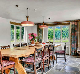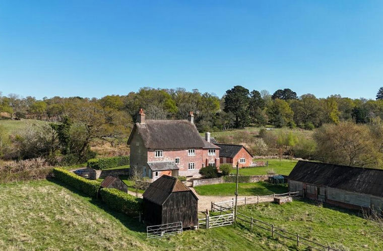 Set within 10 acres of paddocks, landscaped gardens and woodland, Rockford Farm is a beautifully restored Grade II listed farmhouse near Ringwood, offering the perfect blend of heritage and modern rural luxury. Once part of the Somerley Estate and featured in the Domesday Book, this former dairy farm has been meticulously renovated with handcrafted interiors throughout. The home features a stunning open-plan farmhouse kitchen with Miele appliances and flagstone floors, flowing into a triple-aspect dining/family room with panoramic views. Original features include inglenook and brick fireplaces, exposed beams and a charming tiled porch. Upstairs, four double bedrooms enjoy countryside views, including a 20’ master suite with private staircase and a luxurious en-suite with roll-top bath. Practical additions include a boot room, utility and stylish bathrooms, all set within beautifully landscaped grounds. A beautifully converted barn now provides an additional self-contained living space, ideal for multigenerational living or guest accommodation. This versatile addition includes a generous living area, a fitted kitchen and a contemporary wet room, offering privacy and flexibility. The grounds feature a part-walled front garden, expansive lawns, a spacious outdoor entertaining patio with courtyard festoon lights, perfect for al fresco dining, three divided paddocks, wildflower meadows and two wildlife-rich ponds.