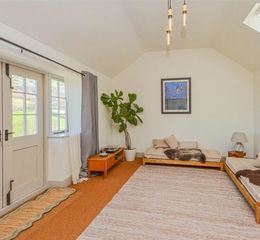 The two bedrooms on the first floor both have their own unique appeal with feature stone walls and timber panelling, original exposed floorboards and an en-suite that suits the property down to the ground with luxurious touches. Gardens wrap around the property with a manicured lawned garden to the front, providing the perfect perch from where you can sit back and enjoy the location to the full.