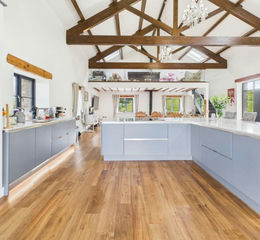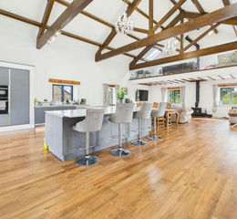 - Stunning open plan living area with vaulted ceiling and exposed beams