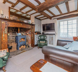 The entrance to this historic building is through a sturdy timber front door, opening into a welcoming hall. Here, original slate floor tiles and exposed timber beams immediately set the tone, hinting at the centuries of stories held within these walls. To your left, a door leads to the cozy snug, a comfortable retreat featuring a window to the front, exposed timbers on both ceiling and walls, and a charming Clearview stove nestled in a brick inset with an oak beam mantel, all set against a fitted carpet. Straight ahead from the hall, you're drawn into the expansive lounge/dining room, an open space brimming with character. Chunky ceiling beams and a striking beam rising from floor to ceiling create an impressive architectural statement. The focal point of this room is an magnificent inglenook fireplace with a brick inset, housing a further Clearview log-burning stove - perfect for chilly evenings. This versatile space also provides ample room for a dedicated dining area.