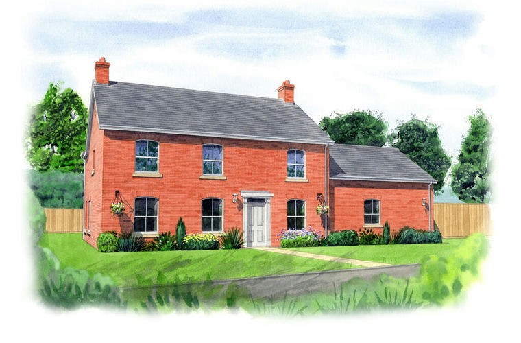 The Proposed Dwelling The architect's approved design as shown in the elevations is for a traditional detached family house with an attached double garage and independent access to a home office above. The illustrated front elevation above is shown with an attractive golden brickwork colour reflecting the local "Farlesthorpe Brick" which can be found in many local buildings.