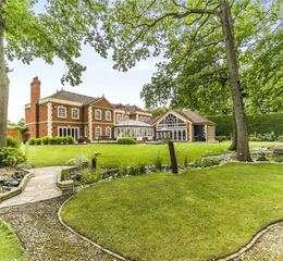 Set back with a large gated frontage this imposing Georgian style residence is a substantial family house with accommodation that extends to around 9,000 sq ft., with triple garage block and accommodation above.
