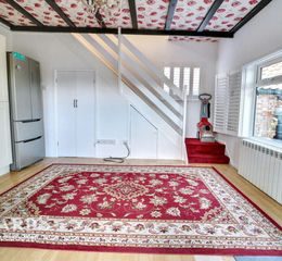 Upstairs, the first floor features a stylish vaulted ceiling with exposed beams, creating a light and spacious feel, along with generous built-in storage. A separate WC adds everyday convenience, while a smartly designed shower room is neatly tucked beneath the staircase on the ground floor—making excellent use of space.
