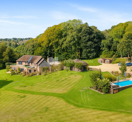 Set within approximately six acres, the grounds are a key feature of the home. Around four acres are laid to sweeping lawns and wildflower meadows, framed by mature woodland and specimen trees. A tranquil wildlife pond and outdoor swim spa create the perfect setting for relaxation, while a network of terraces makes the most of the southerly aspect and natural contours of the land.