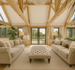 Designed and built by the current owners, Woodland Cottage is a truly unique eco-home extending to approximately 9,863 sq ft in total, including the main residence, guest annexe, and extensive outbuildings. Seamlessly blending timeless cottage charm with contemporary, environmentally conscious design, this remarkable home has been meticulously created to connect every living space with the surrounding landscape.