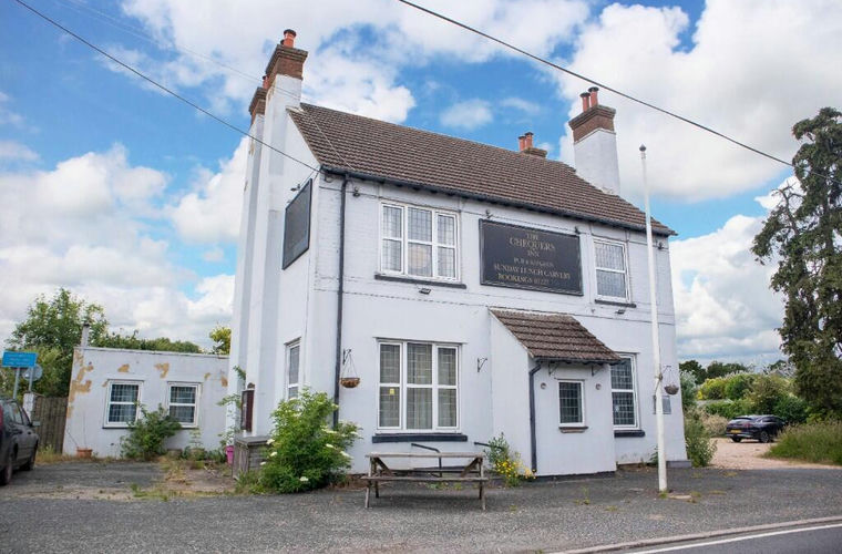 The Chequers Inn is a well-proportioned detached property of brick construction under a pitch tile roof with flat roof extension to rear.