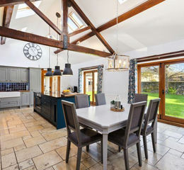 Exceptional six-bedroom barn conversion, nestled on a private lane and radiating elegance and charm. This remarkable property boasts an expansive, mature acre plot, perfectly situated in the highly coveted village, making it a true gem.