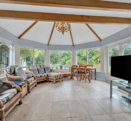 Natsfield House is an attractive home with many rooms enjoying dual aspects, taking in views to the front over farmland and to the rear across the gardens. The layout provides ideal flexibility, with two staircases creating the potential for an annexe arrangement if desired. The west-facing rear garden is a particular feature of the property, providing delightful year-round outlooks from the garden room. All bedrooms include fitted furniture, and the grounds also incorporate a tennis court (in need of some refurbishment).
