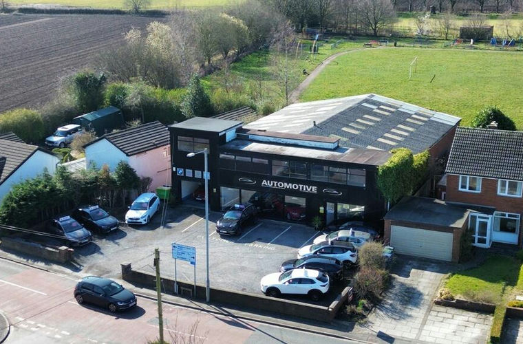 - Detached car showroom with offices and parking.