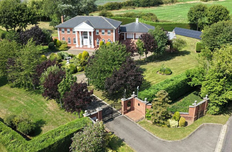 Outside - The property sits in grounds extending to approximately 1 3/4 acres and are primarily laid to lawn with mature trees. The property is accessed via private gates which opens onto a circular drive with centre island shrubbery. In front of the Triple garage block is a paved brick forecourt providing ample off road parking.