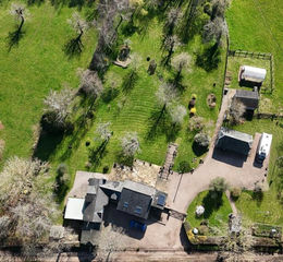 Formal Gardens - To the front of the property, formal gardens contain three old Perry Pear trees, mature Silver Birches, further mature trees and shrubs. There are large lawned areas, a wildlife pond, pergola area enjoying the vista through to the paddocks and towards May Hill. There is a further orchard area with apple, damson and plum trees; greenhouse and bee keeping area.