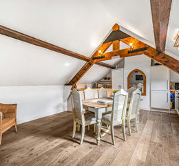 On the second floor, there are two additional large double bedrooms with exposed beams and a shower room.