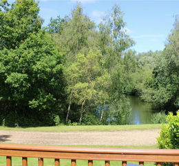The property includes a private veranda at the front. The park covers some 20 acres and includes five fishing lakes. The park describes its lakes as beautiful and peaceful, with a reputation for producing powerful fish. The lakes include one main lake and four smaller ones, covering about 7 acres of water in total. They are well-stocked with coarse fish, and four of the lakes have carp over 20 lbs. The smaller island lake, closest to the cabins, also has a variety of smaller fish, making it ideal for younger visitors.