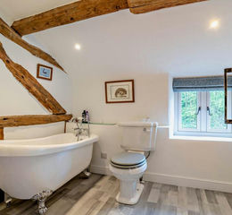 The main bedroom benefits from Velux window and sink with WC. Bedroom two is double size with fitted cupboards for storage, a WC and sink, with views towards Brown Clee Hill over the paddocks. Bedroom three is a double bedroom with built in storage and Velux window. Family bathroom has a slipper bath and separate shower. The landing is light and spacious with two Velux windows. Throughout the property has maintained a lot of its original features, exposed beams, deep windowsills and some original oak doors.