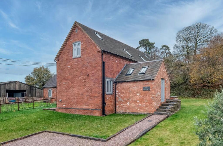 Outside, the home enjoys a wraparound private garden, perfect for outdoor dining, entertaining, or quiet relaxation. To the front, the setting is peaceful and picturesque, framed by leafy surroundings and open views across the Worcestershire countryside.
