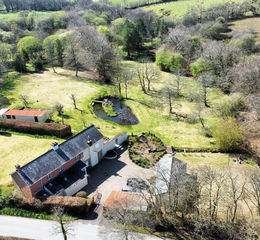 From the road leading to the 5 bar entrance gate, the 5.5 acre plot offers a large gravel courtyard beside the house and adjacent to office/studio/workshops that would be ideal for commercial use, if required, and subject to planning. There is outside security lighting all around the property which is also enclosed with deer proof fencing. A path from the courtyard leads past a colourful and well stocked plant and shrub border and French doors from the family room open to a paved terrace area. Beyond, are extensive garden areas interspersed with many mature and recently planted ornamental trees and incorporating a pond with central island encouraging water loving plants. The grounds open to the outbuildings formerly used as stables, beside this is the vegetable garden and an orchard area with apple, pear and cherry trees. The gardens lead into an extensive and unspoiled area of natural woodland including two further wildlife ponds with islands and a stream, attracting a plethora of flora and fauna, including animals gracing the garden areas. Within the grounds there are large store buildings previously used as stables with large greenhouse attached and water treatment filtration equipment servicing the borehole for the water feed, offering light and power. The excellent outbuildings that could be utilised as a studio or workshops, making it ideal for commercial use with its night storage heaters and a water connection offering windows to front and rear aspects with its three phase IP67 electrics upgrade.