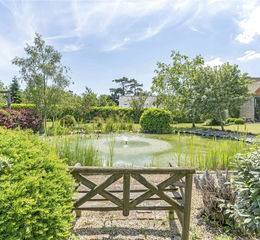 Approached via a private lane, the property benefits from driveway parking for multiple vehicles and an expansive landscaped garden featuring a picturesque pond.