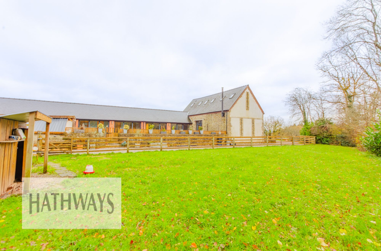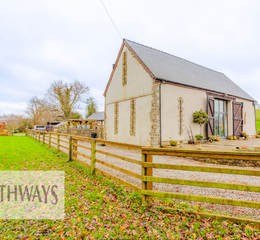 GUIDE PRICE £800,000 TO £825,000. HATHWAYS are proud to present this stunning detached barn conversion nestled in the charming rural village of Llangybi. This immense property is a rare find, harmoniously incorporating the requirements of modern day living whilst retaining and enhancing original features, including stone walls, exposed beams, and a stunning gated entrance with gorgeous views from every direction.