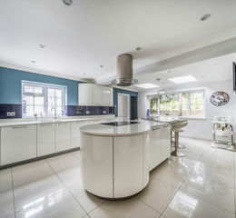 Designed with flexibility in mind, the property can be configured into up to four separate living areas, making it ideal for multi-generational families, guest accommodation, holiday lets, or home working. The main residence offers stylish, contemporary interiors and generous proportions throughout, while the barn conversion has been thoughtfully renovated to provide a fully equipped ancillary living space. The barn includes a large reception room, four well-appointed bedrooms, two kitchens, and modern bathrooms—ideal for extended family or guests.