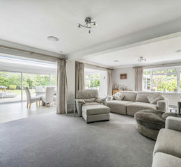 Nestled at the end of a private lane and set within a stunning plot of just under an acre, this remarkable property presents a rare opportunity to acquire a substantial and versatile residence. Comprising a spacious five-bedroom, three-bathroom detached family home and a beautifully converted four-bedroom barn with two bathrooms and a separate WC, this exceptional offering is perfect for a range of lifestyles—and comes with the added benefit of no onward chain.