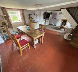 25' 9" x 16' 2" (7.85m x 4.93m) A large open plan area, part quarry tiled flooring. Two large fireplaces with one housing a cast iron log stove. 4 radiators and a timber staircase leading to the first floor.