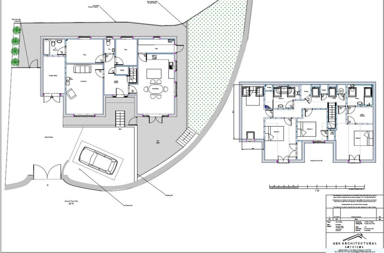The proposed accommodation has been thoughtfully designed to suit modern living, featuring a spacious kitchen/diner, a generous living room, a separate snug or study, and a principal bedroom complete with en-suite bathroom. Externally, the plans incorporate off-road parking, a garage, and private gardens, offering an ideal blend of indoor and outdoor space for family life.