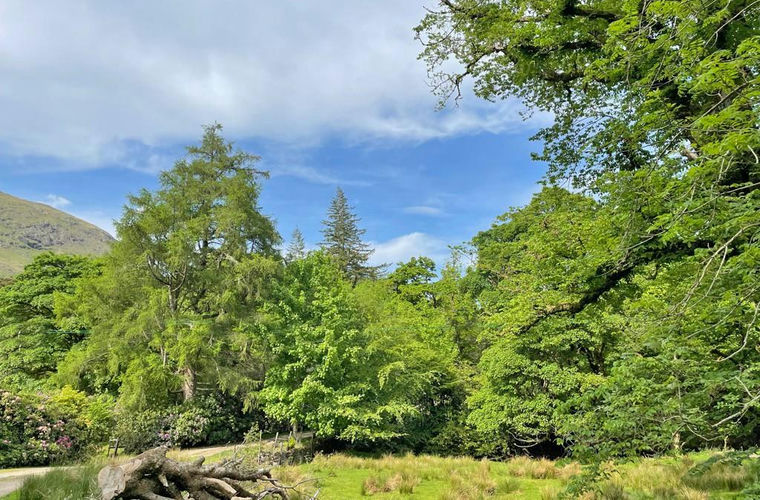 Approximately 8 miles south of Fort William on the A82, cross the Corran Ferry and turn left. After 0.5 mile, turn right, sign-posted Clovullin, and shortly after the primary school and village hall, turn right again through a pair of grey iron gate posts, towards Ardgour House. Follow this road for half a mile, just after Ardgour House, the road branches to the right. Just over a bridge the plot is facing you.