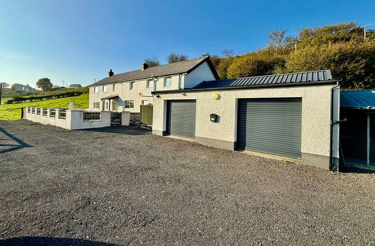 An adjoining double garage with two remote control roller doors provides excellent storage or workshop space, and a large, recently re-surfaced driveway offers parking for several vehicles and trailers. Additionally, a static caravan-adapted and extended-offers flexible space for temporary accommodation or potential for other uses. There are also 3 dog enclosures to the side of the property, each with its own insulated kennel.