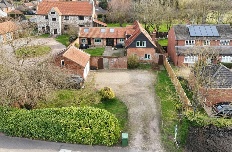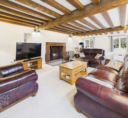 Steeped in HISTORY and BRIMMING with CHARACTER, this remarkable DETACHED BARN STYLE HOME is believed to be the oldest building in Poringland, dating back approximately 500 years. Now FULLY MODERNISED to an EXCEPTIONAL STANDARD, the property seamlessly blends ORIGINAL FEATURES with CONTEMPORARY LUXURY. Set within a generous 0.21 ACRE PLOT (stms) in the heart of the village, the home offers a wealth of versatile accommodation. The grand HALL ENTRANCE sets an impressive tone with EXPOSED TIMBER BEAMS, leading to a W.C and MAGNIFICENT 25’ SITTING ROOM with a CENTRAL WOOD BURNER, perfect for cosy evenings. The DINING ROOM offers a TRIPLE ASPECT ROOM with a variety of uses, whilst also creating a link to the NEWLY INSTALLED KITCHEN and adjacent UTILITY ROOM. Measuring 21’, the KITCHEN/DINING ROOM features a CENTRAL ISLAND whilst sitting under a vaulted ceiling, creating an ideal setting for both family life and entertaining. With ATTRACTIVE CABINETRY and SOLID WOOD WORK SURFACES, the kitchen creates the perfect blend of FUNCTIONALITY and family space. A ground floor BEDROOM/STUDY also includes an INDEPENDENT EXTERIOR ACCESS with a PRIVATE LUXURY EN SUITE. UNDERFLOOR HEATING runs through the KITCHEN and STUDY, whilst networking has been installed throughout the house. Upstairs, THREE FURTHER BEDROOMS are available, two of which benefit from LUXURY EN SUITES and a range of EXPOSED TIMBER BEAMS. An EXPANSIVE DRIVEWAY leads to a DOUBLE GARAGE, providing ample parking and storage. A rear COURTYARD enjoys a SECURE and SECLUDED SETTING, whilst the SOUTH FACING WALLED GARDENS are a true sanctuary, offering landscaped spaces that are both private and inviting.