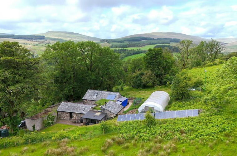 This off-grid retreat enjoys an elevated position with far-reaching views and stands within approximately 4.082 acres of enchanting grounds. The property includes a mix of woodland, gardens, and outbuildings, and even a charming Treehouse, making it an ideal escape for those seeking peace, privacy, and a closer connection with nature. The gardens also include an orchard, polytunnel and fruit cage which extend out into the woodland which features a disused lime kiln and a stone quarry adjacent.