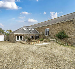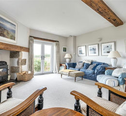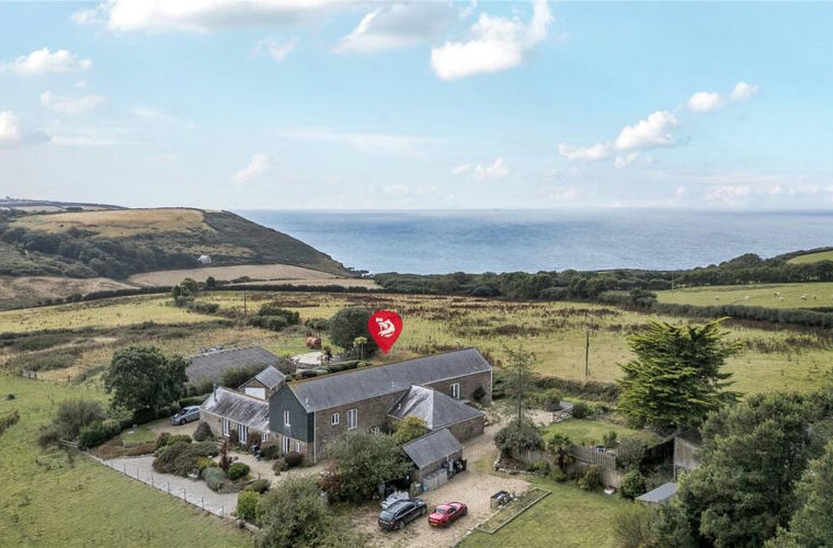 This stunning barn conversion opens on the ground floor with a Dutch door, leading into an elegant hallway. On either side are two spacious double bedrooms, each with stunning sea views and sizeable ,walk-in wardrobes, both bedrooms also open out onto seating areas. The main bedroom also benefits from a good sized en-suite. A cosy snug or study connects to two further guest bedrooms and a separate utility room. The versatile layout allows a dedicated office to serve as a fifth bedroom, while a large inner hallway can easily function as a snug or playroom. The true showpiece of the home is revealed at the top of the semi-spiral staircase: a stunning open-plan kitchen and dining area with generous storage throughout. The adjoining dining space is perfectly suited for hosting and entertaining. Vaulted ceilings with exposed timber beams preserve the charm of the original barn and floor-to-ceiling windows frame sweeping views of the sea and countryside.