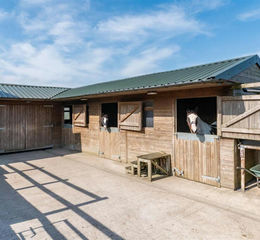 Fields And Stables - Adjacent to the property are five acres of well maintained and fenced paddocks (a further five acres are available by separate negotiation). The paddocks also include a timber stable block of three lose boxes, feed store and fodder barn.