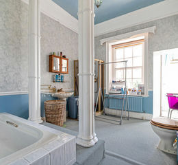 On the first floor, a galleried landing serves the principal bedroom suite with en suite bathroom, three further well-proportioned bedrooms, a family bathroom and a storage room. The second floor offers three characterful eaves bedrooms, a substantial storage room with potential for further accommodation (subject to the necessary consents), a large bathroom and access to the roof via a skylight.
