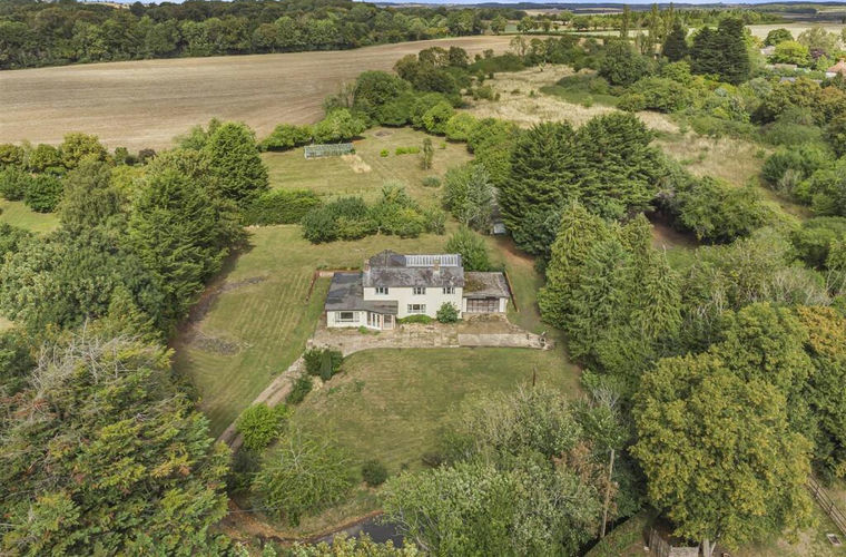 Outside - The property is accessed via a five bar gate which opens to a driveway providing off-street parking for several vehicles and access to the double garage. The front garden is laid to lawn and to the rear is a sunken hardstanding with an attractive flint wall bordering. Steps lead up to the orchard which is planted with a number of established fruit trees and a dilapidated greenhouse. In addition, there is detached workshop which shows signs of structural movement and would need to be repaired or rebuilt.