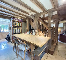 The ground floor of the property offers a kitchen, a separate dining room and lounge which are separated by a bespoke oak staircase. The lounge has an inglenook fireplace with a log burner which heats the house beautifully - but to ensure there are no cold corners there is another log burner in a second inglenook directly behind the lounge in bedroom 4.