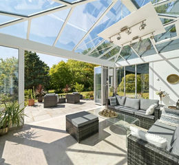 The reception rooms have been designed to provide excellent entertaining space, whilst still providing for comfortable family living. The triple aspect drawing room has excellent storage space, a feature fireplace and floor to ceiling windows flooding the room with natural light. On one side, bi-fold doors open onto a small South facing patio, and on the other, through to a large conservatory with further bi-folding doors opening out to the generously proportioned paved garden terrace - perfect for sundowners. The stylish Italian marble floors being perfectly cool in Summer, but warm in winter, thanks to under floor heating, are laid throughout the drawing room, conservatory, dining room and hallways.
