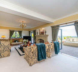 Upon entering, you are greeted by a gracious entrance porch that leads into an impressive reception hallway, setting the tone for the elegance that awaits. A conveniently located two-piece cloakroom/WC adds a touch of practicality. The flowing floor plan boasts three magnificent reception rooms, including an expansive 26-foot main lounge that features a breath taking stone fireplace and a cosy wood-burning stove - perfect for those tranquil evenings by the fire. The fireplace is flanked by two sets of French doors which seamlessly connect to the outside, inviting in natural light and the beauty of the surrounding landscape. Just along the hallway there's a beautifully appointed sitting room with dual aspects providing a serene retreat and an ideal lounge for teenagers, while the spacious formal dining room sets the stage for unforgettable gatherings with family and friends.