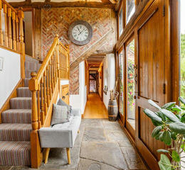 This splendid Grade II listed, former barn and stables, blends 17th Century history with the comforts of modern living. Beyond its gated entrance lies a property filled with architectural drama and warmth: vaulted ceilings, exposed beams, and rooms that invite both family life and entertaining. From the moment you step into the galleried hallway, with its flagstone flooring and herringbone brickwork, you feel the blend of craftsmanship and creativity that defines this remarkable barn. Accommodation is versatile where every room carries its own character, blending comfort with heritage. This is more than a barn conversion; it’s a lifestyle home where history, elegance and comfort sit side by side all within strolling distance of the beautiful Earlswood Lakes.