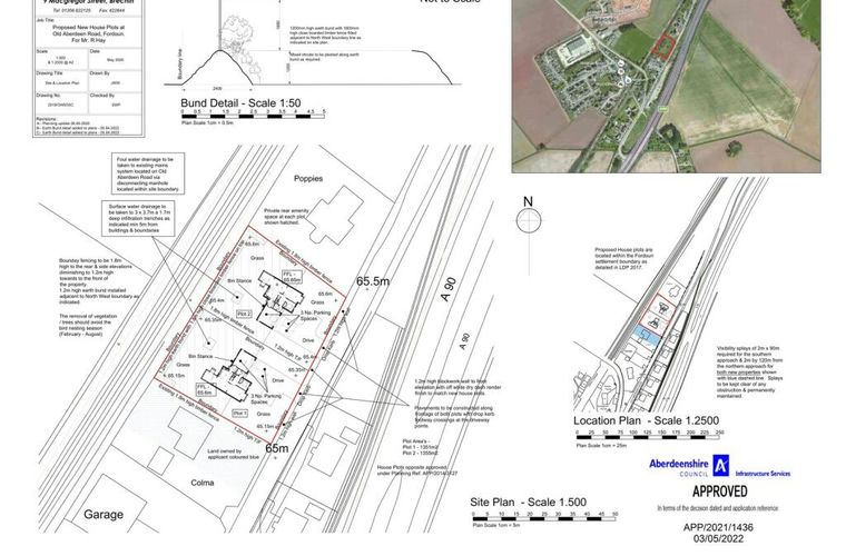Plot 1 North East of 3 Old Aberdeen Road presents an exciting opportunity to acquire a development site, offered for sale with Full Planning Permission for a 4 BED DETACHED TWO STOREY DWELLING. The total development site extends to approximately 1353sqm/0.35acres and is perfectly positioned on the outskirts of Fordoun village, with excellent transport links to Aberdeen in the North and Dundee and beyond to the South. The finished property will offer an exceptionally spacious and versatile home, showcasing the best of open-plan family living, with the benefit of a ground floor bedroom and WC, together with 3 double bedrooms, ensuite and family bathroom to the first floor. An integral double garage will create ample space for secure parking and storage, with additional parking on the driveway and a generous plot for the discerning buyer to landscape their preferred garden. Full details and all relevant planning documentation can be found on the Aberdeenshire Council website by using planning reference – APP/2021/1436.