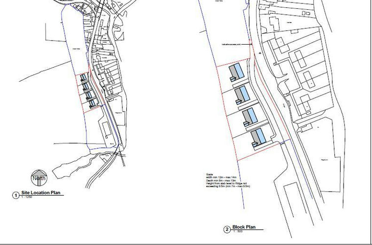 four detached dwellings, with separate garages. The plots will have a right of way over the access lane, which serves a further agricultural shed and the bounding land owned by the vendor. (Planning Ref No. PL/03756.) Subject to separate negotiations, the vendor may consider selling extra land on the northern end of the site to enable improved access to the plots.