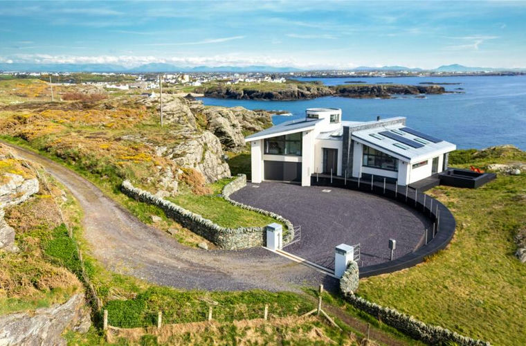 White Horses is a stunning modern house occupying one of the most spectacular locations in North Wales. Situated on a dramatic south facing headland, the property enjoys extraordinary views including wonderful sunsets and incredible starry displays on clear nights thanks to such little light pollution. Built in 2017, White Horses has been expertly designed to blend contemporary architecture with historic coastline, and is constructed to an exacting specification to meet with modern expectations and living requirements, also to withstand the elements from such a coastal environment. The house also incorporates a state-of-the-art Loxone smart automation system, offering seamless control over lighting, heating, security, and more.