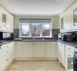 The Stunning Countryside Family Home... - Welcome to Willow Farm, a stunning property located in a beautiful countryside setting with panoramic field views. As you enter through the front door, you are greeted by a spacious entrance hall with a large window flooding the space with natural light. The clever use of built-in storage under the stairs enhances the functionality of the space, with a separate cloakroom offering a wash basin and W/C. Moving on, the kitchen is a true gem with a range of modern wall and base units, a large 4-chamber Rangemaster with five hobs, a hot plate and an extractor over, dishwasher, and water softener, all complemented by breath-taking views of the surroundings. There is also space for an undercounter washing machine and large freestanding fridge-freezer.