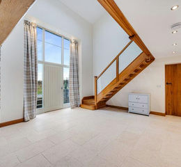 Impeccably and sympathetically converted, the barn seamlessly blends traditional charm with modern luxury. The accommodation is arranged over two floors, centred around a striking galleried landing with an impressive oak front door, glass and oak balustrade, and stone-flagged flooring.
