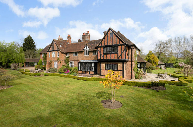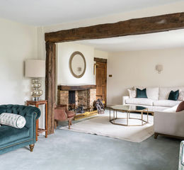 While very much situated amongst some of Surrey’s most unspoilt countryside, Fords Farm is surprisingly well connected , being moments from Brookwood Station with its London links, and the county town of Guildford. The property is tucked away on the eastern edge of Pirbright in a wonderfully private setting, its own extensive grounds enveloping the house with the feeling of a small, secluded estate. The former farmhouse is believed to date back to the 17th century and is Grade II listed, notable for its timber framing and attractive herringbone brick exterior. Inside, however, is where the house’s lengthy history is best seen: there are a wealth of stunning original features, beautifully incorporated into the modern décor . Many rooms have exposed beams, imposing doors and character fireplaces, though the most significant room is certainly the wood-panelled dining room, where lead light windows, ornate wood carvings and a cavernous fireplace feel like a step back in time. Externally, landscaped gardens are enclosed by mature woodland and a variety of outbuildings provide scope for various uses, in addition to separate selfcontained cottages for staff or visiting guests.