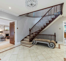 Rising driveway through twin electric gates lead to a substantial forecourt and parking area to this exceptional family and entertaining house extending to approximately 8,500 sq. ft. The versatile accommodation incorporates large and spacious reception areas and five double bedroom suites in addition to a leisure floor with gymnasium, games room, cinema with lounge area and bar.