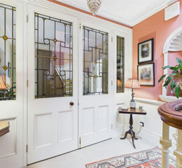 Approaching the formal entrance via the private drive with a turning circle around a magnificent Copper Beech tree, the commanding presence and splendid setting of Wreighburn House reveals itself. The house underwent a major renovation in the 1990’s in keeping with its history and style featuring ornate ceiling cornices, decorative ceiling roses, stone mullioned windows, stone flagged floors and grand fireplaces. The accommodation predominantly faces south, flooding the reception rooms, kitchen and bedrooms with light and warmth. French windows from the Family/breakfast room, Dining Hall, Orangery and Drawing Room open directly to the garden. Despite the history Wreighburn House has a light and modern feel.